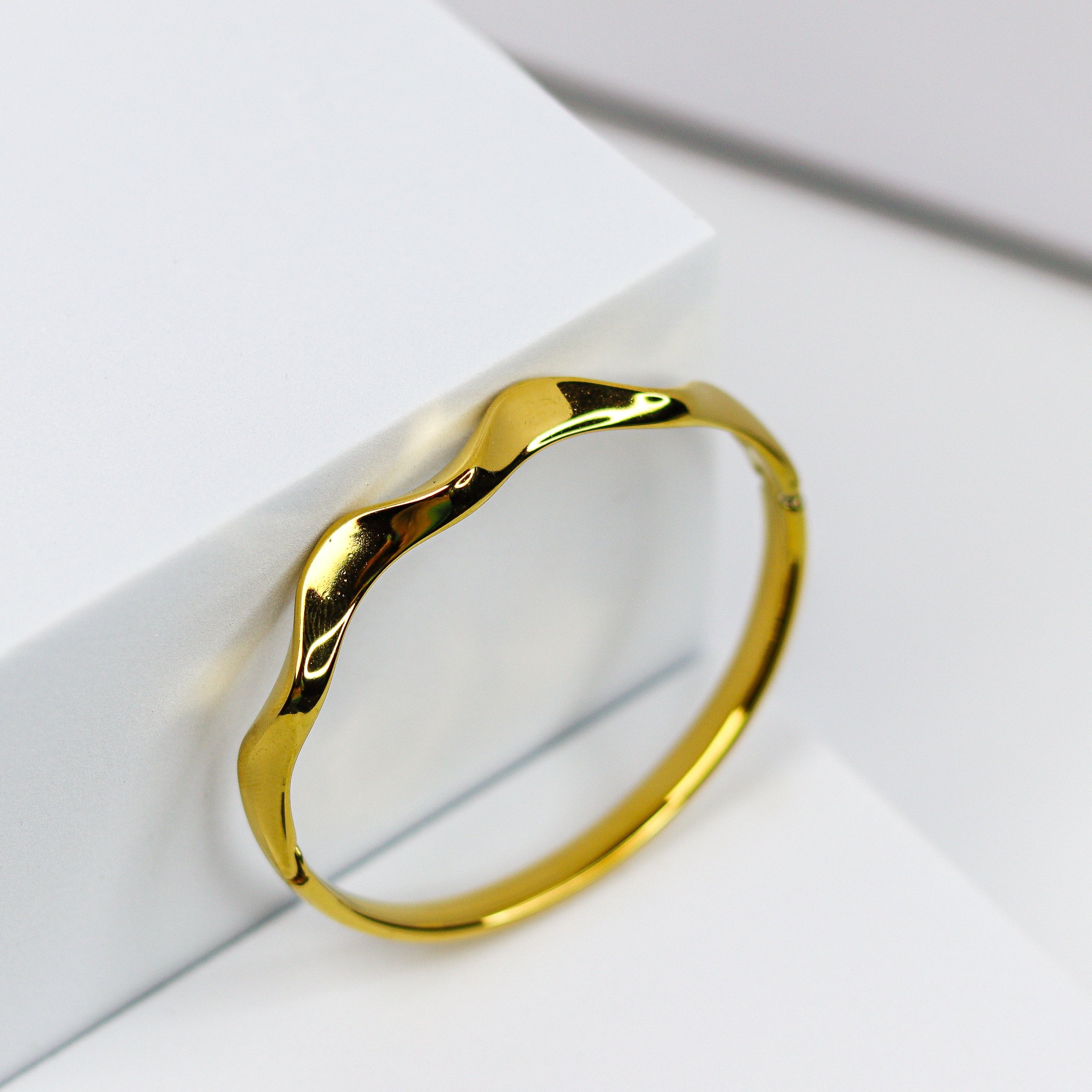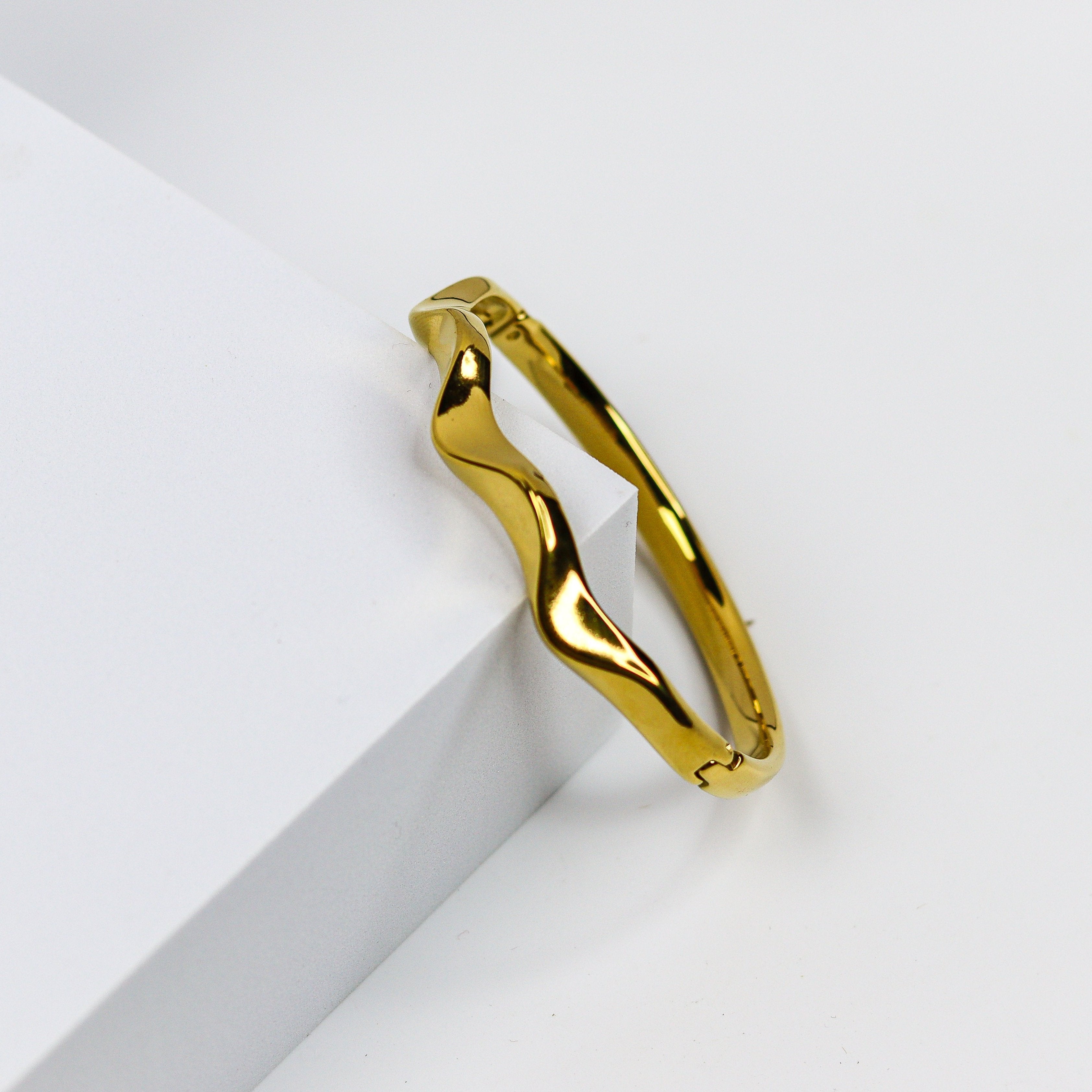 Gold Wave Fusion Bangle Bracelet