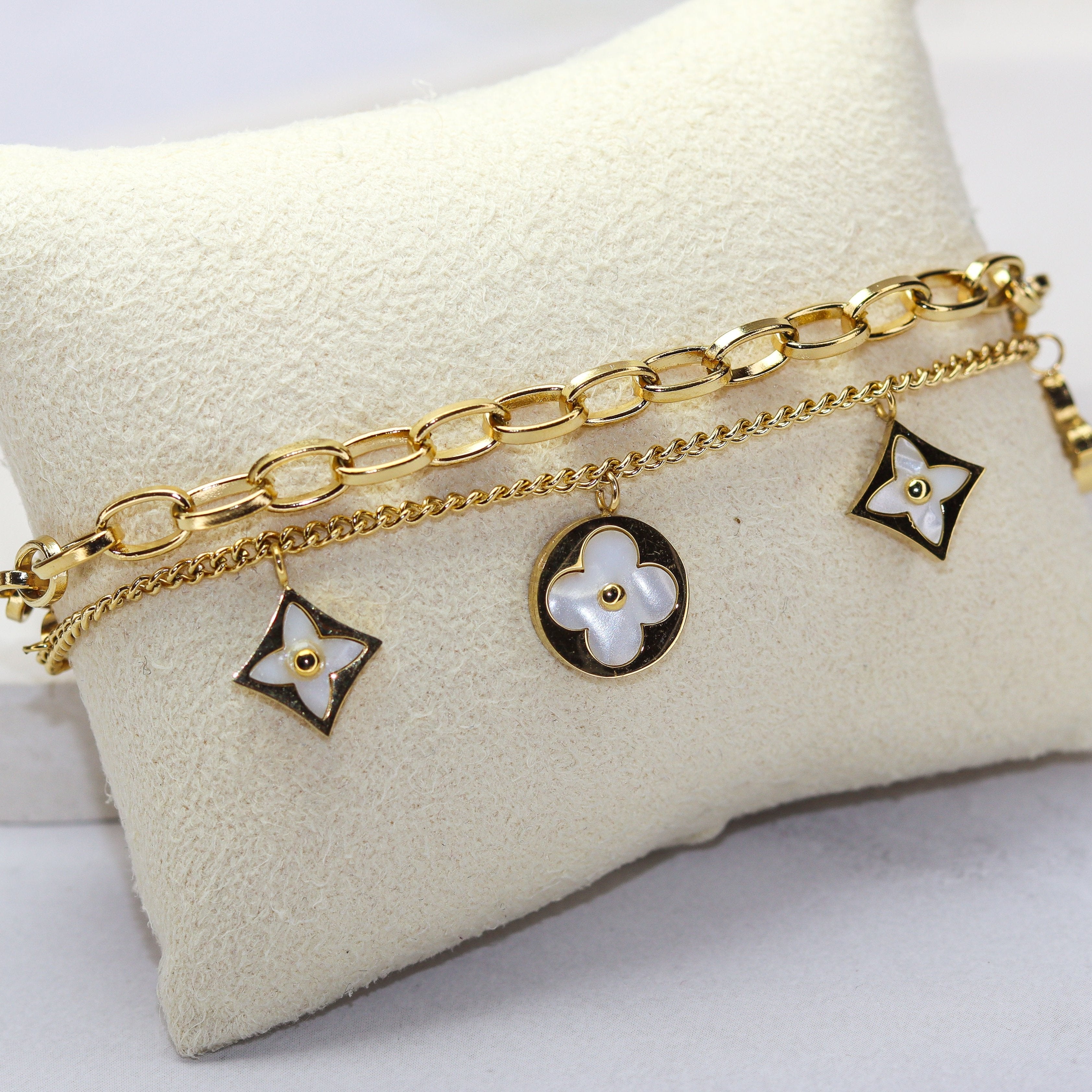 Dual-Chain Snow White Clover Bracelet - Adorn-iq