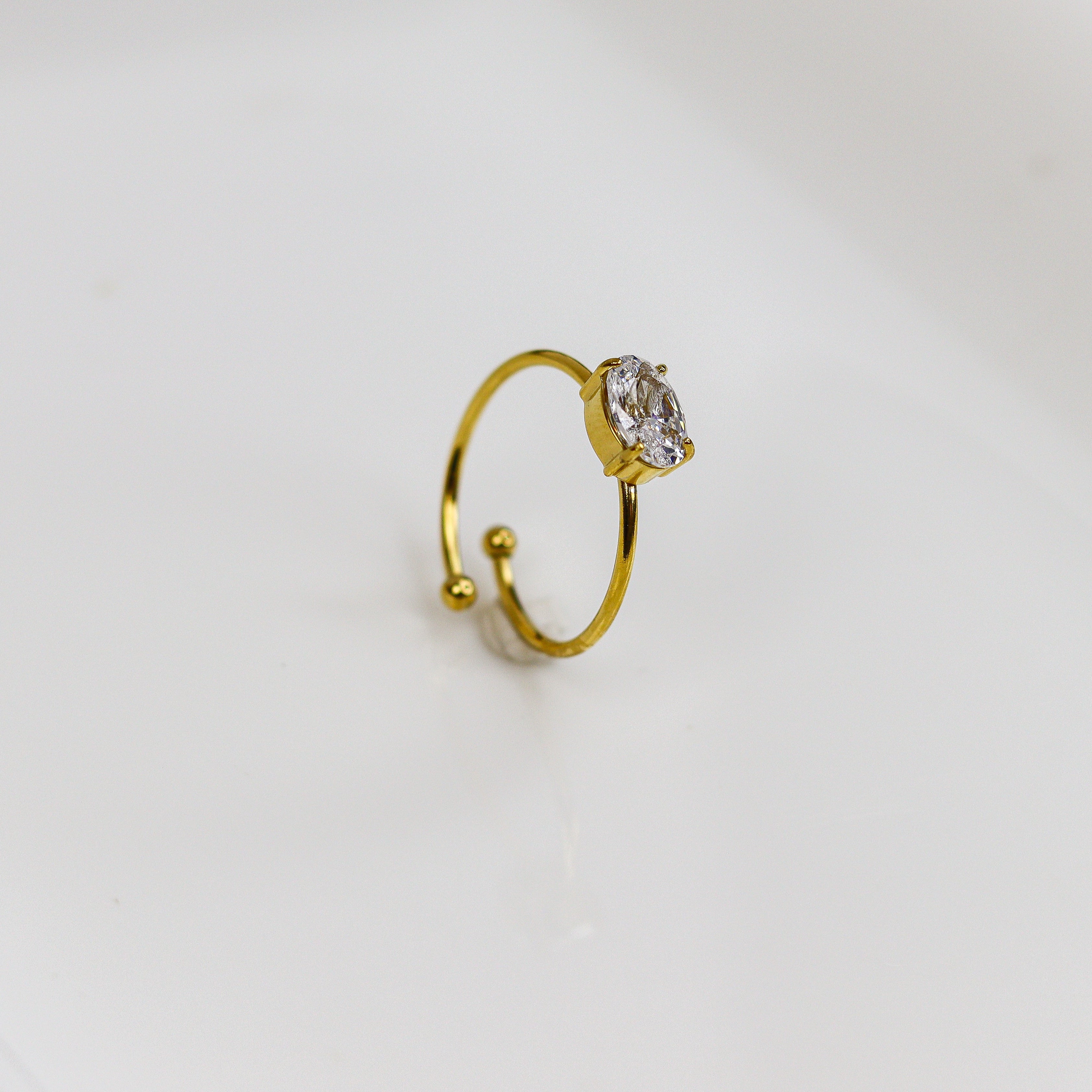 This ring embodies timeless sophistication with its premium stainless steel base and rich 18k gold plating. Designed for those who appreciate effortless elegance, it offers a flawless blend of luxury and everyday durability.