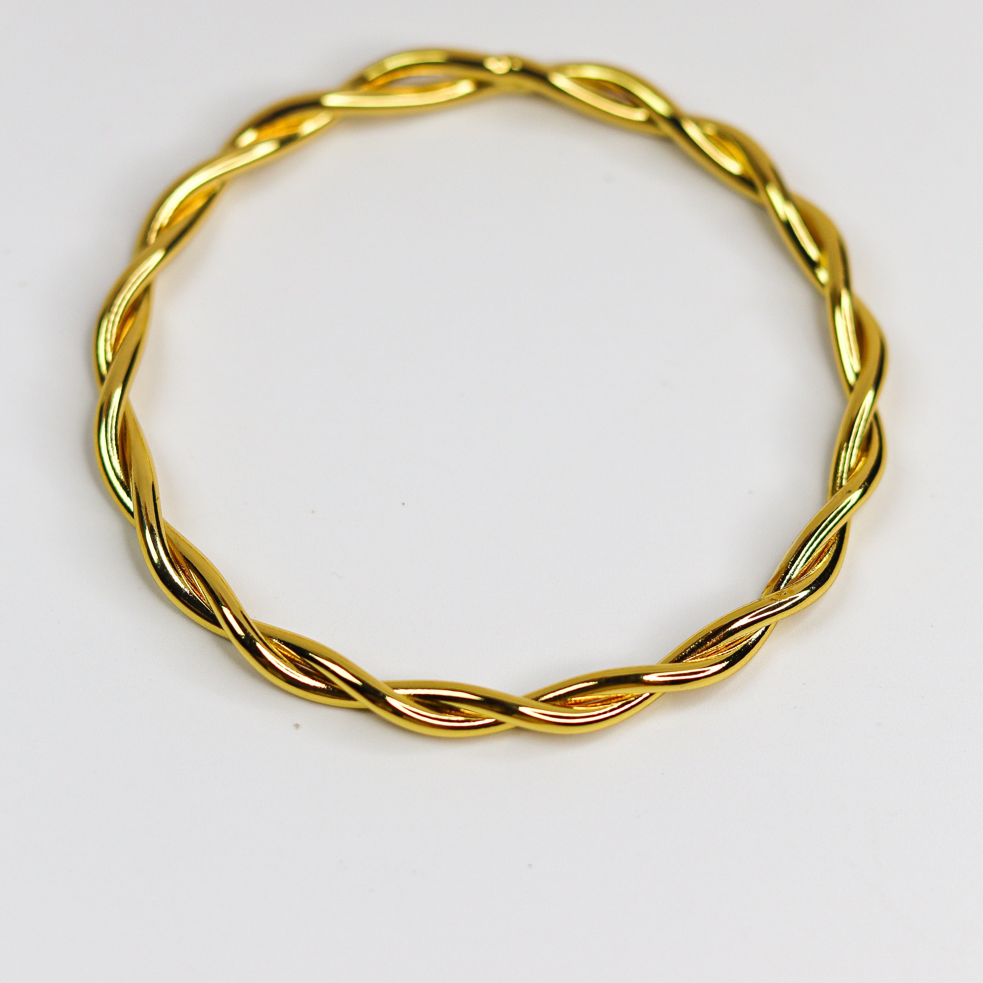 Radiating subtle sophistication, this twisted bangle set embodies harmony and grace. Each bangle features a fluid intertwined design — symbolizing connection, strength, and eternal elegance. The high-shine gold finish adds a touch of refined glamour, making it a versatile piece that complements every mood and occasion.