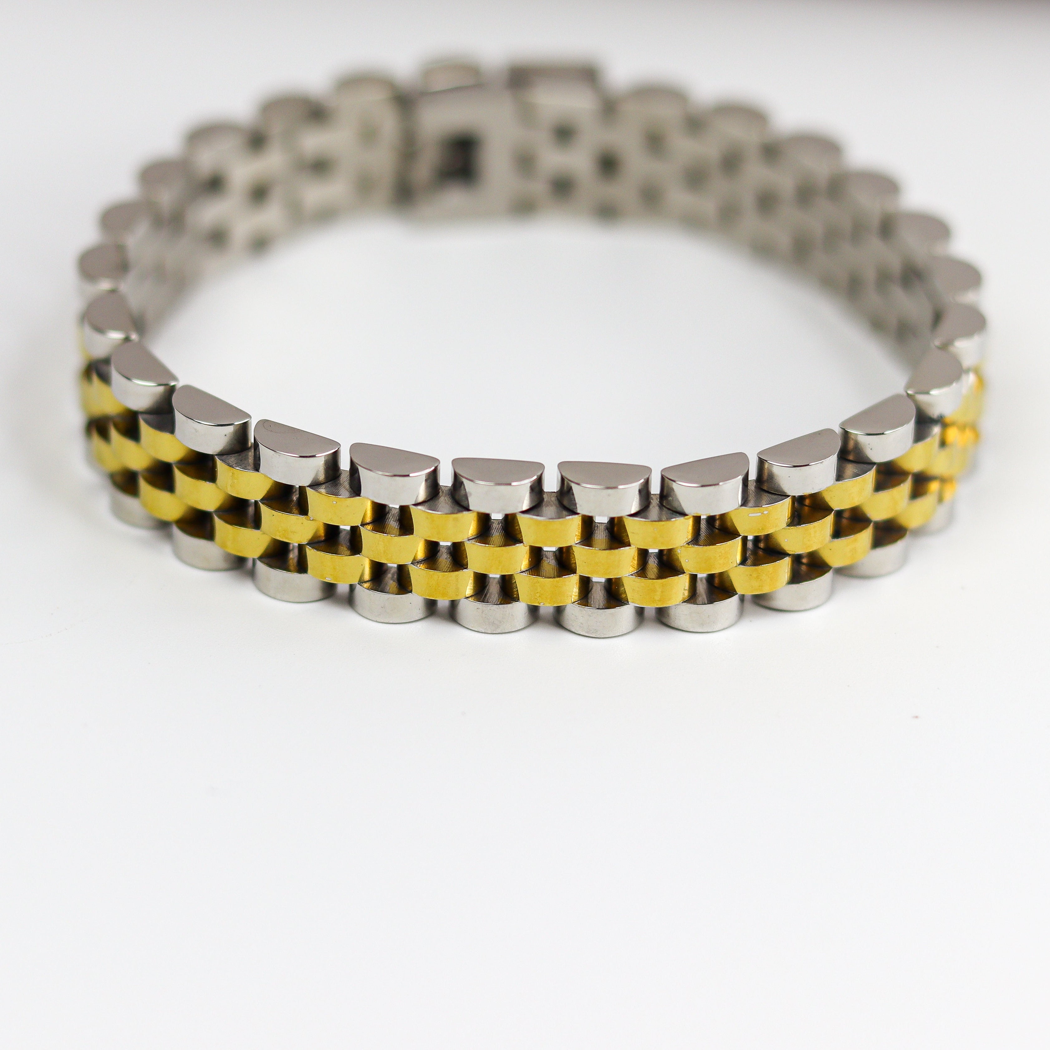 Crafted from premium stainless steel and finished in 18k gold, silver, or dual-tone plating, this bracelet is waterproof, tarnish-resistant, and hypoallergenic — designed for everyday durability and lasting brilliance.