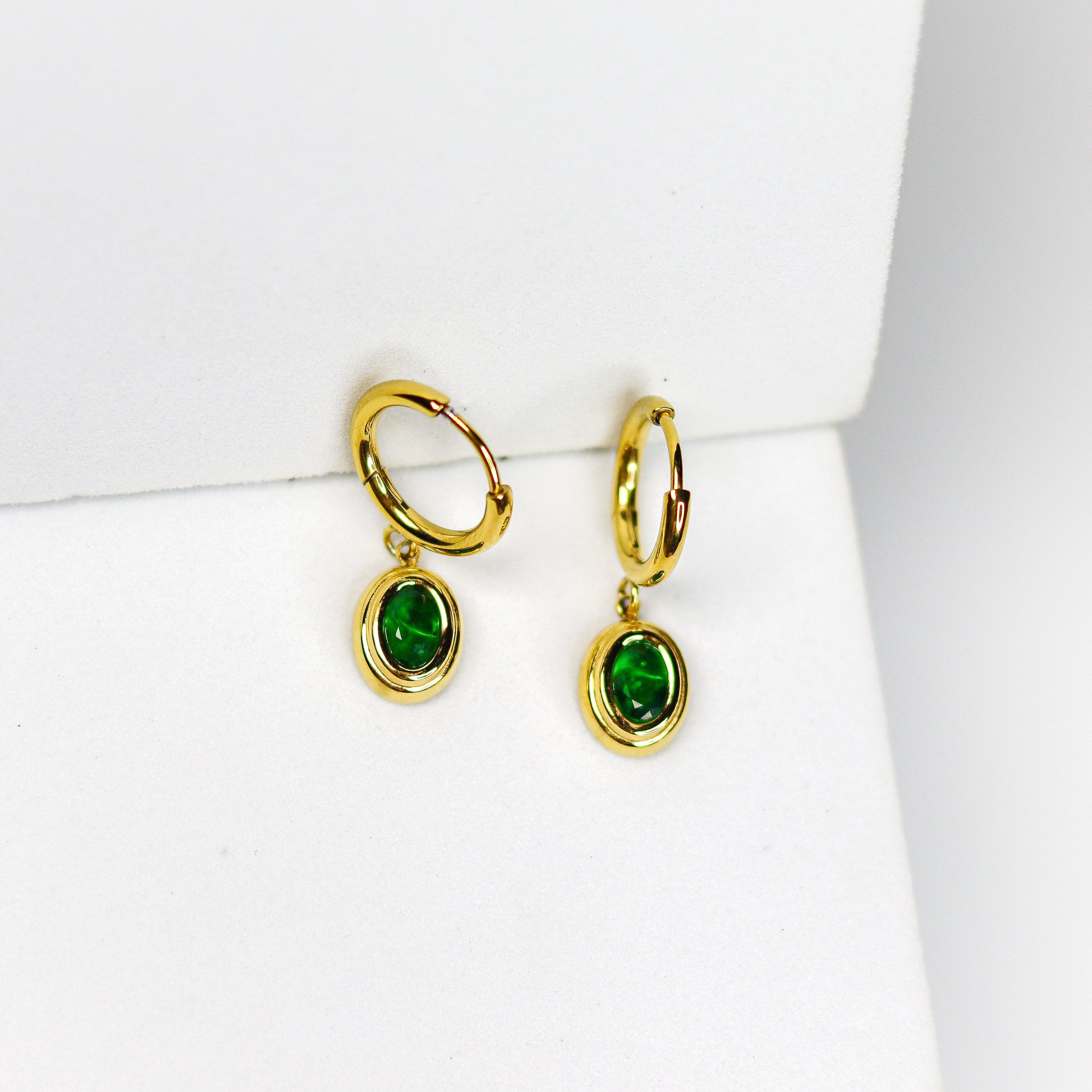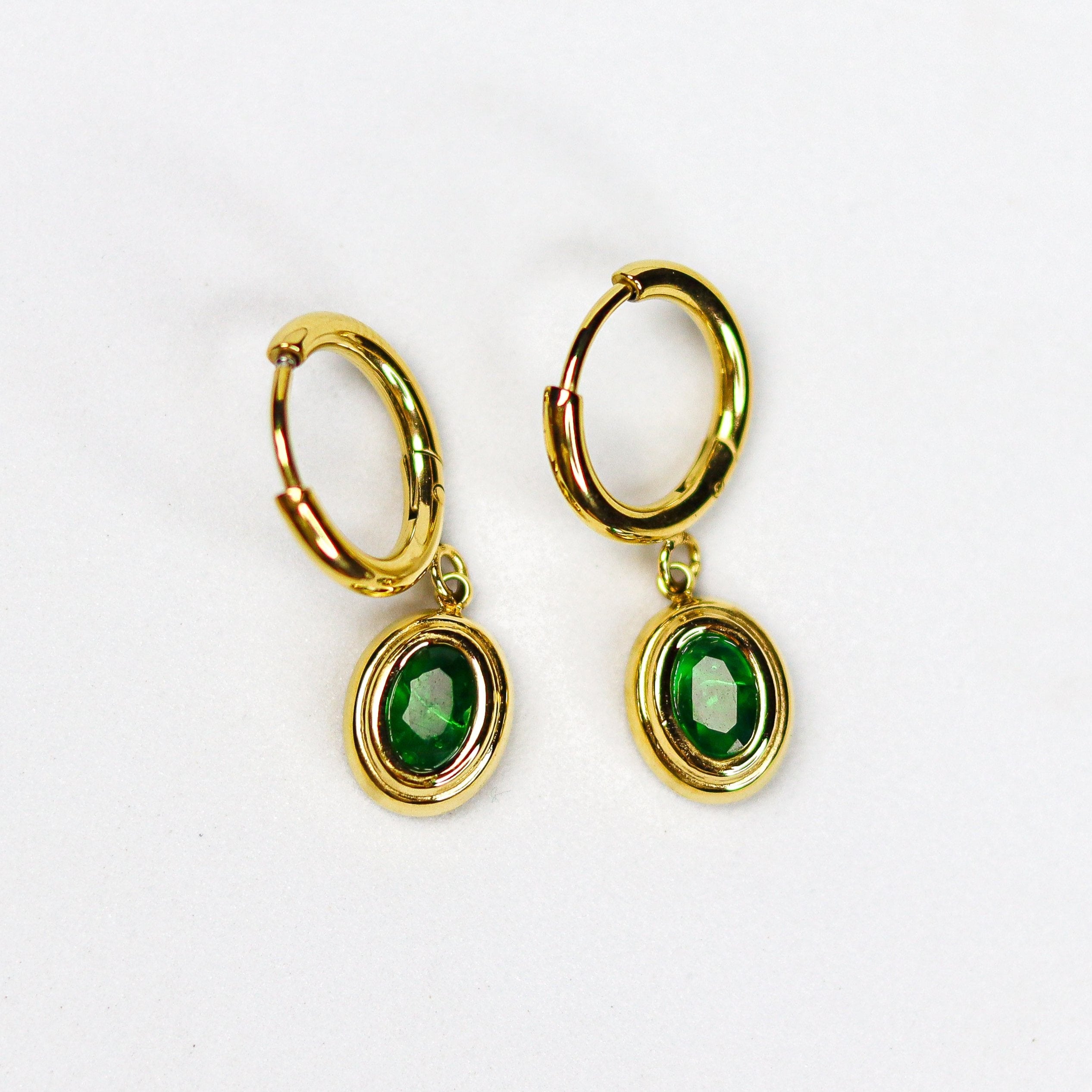 Emerald Drop Hoops
