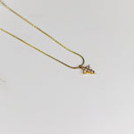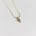 Style: A fine, high-polish snake chain or omega chain in a rich gold tone, suspending a petite cross pendant meticulously set with sparkling cubic zirconia (CZ) stones.