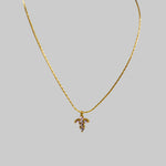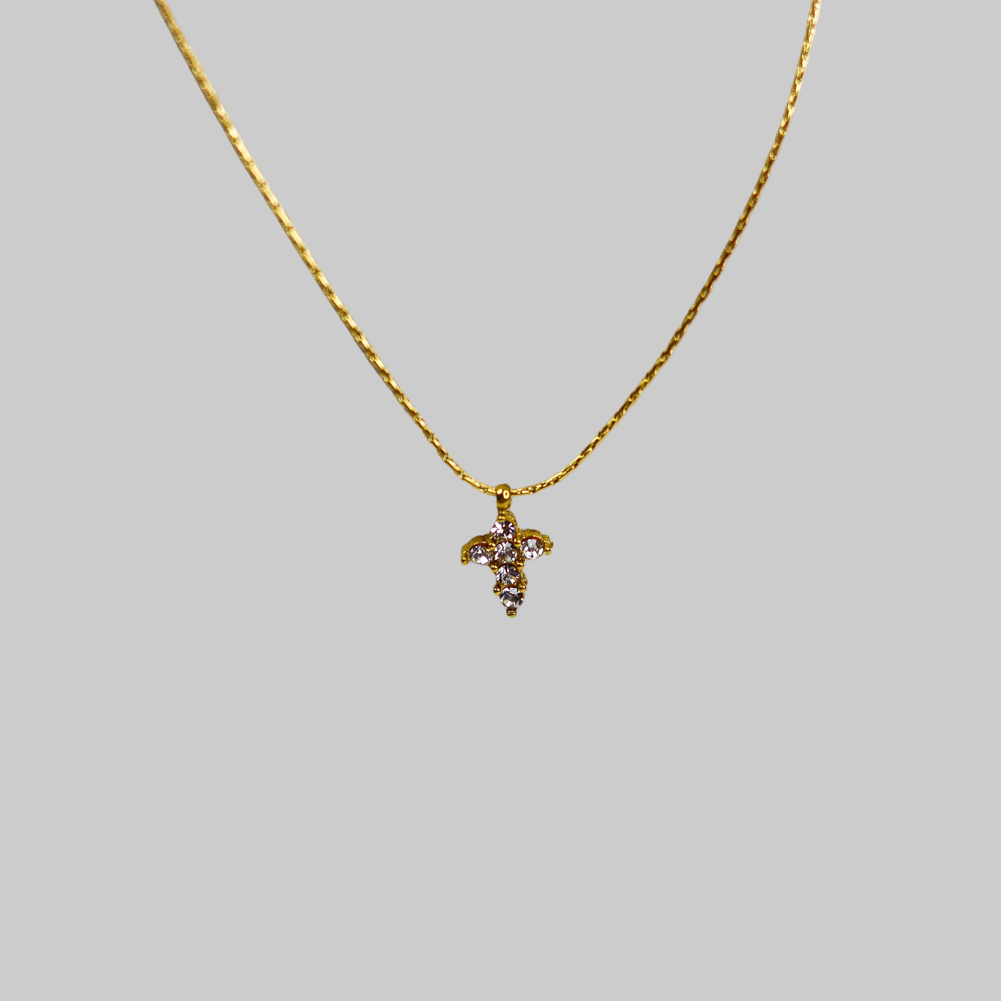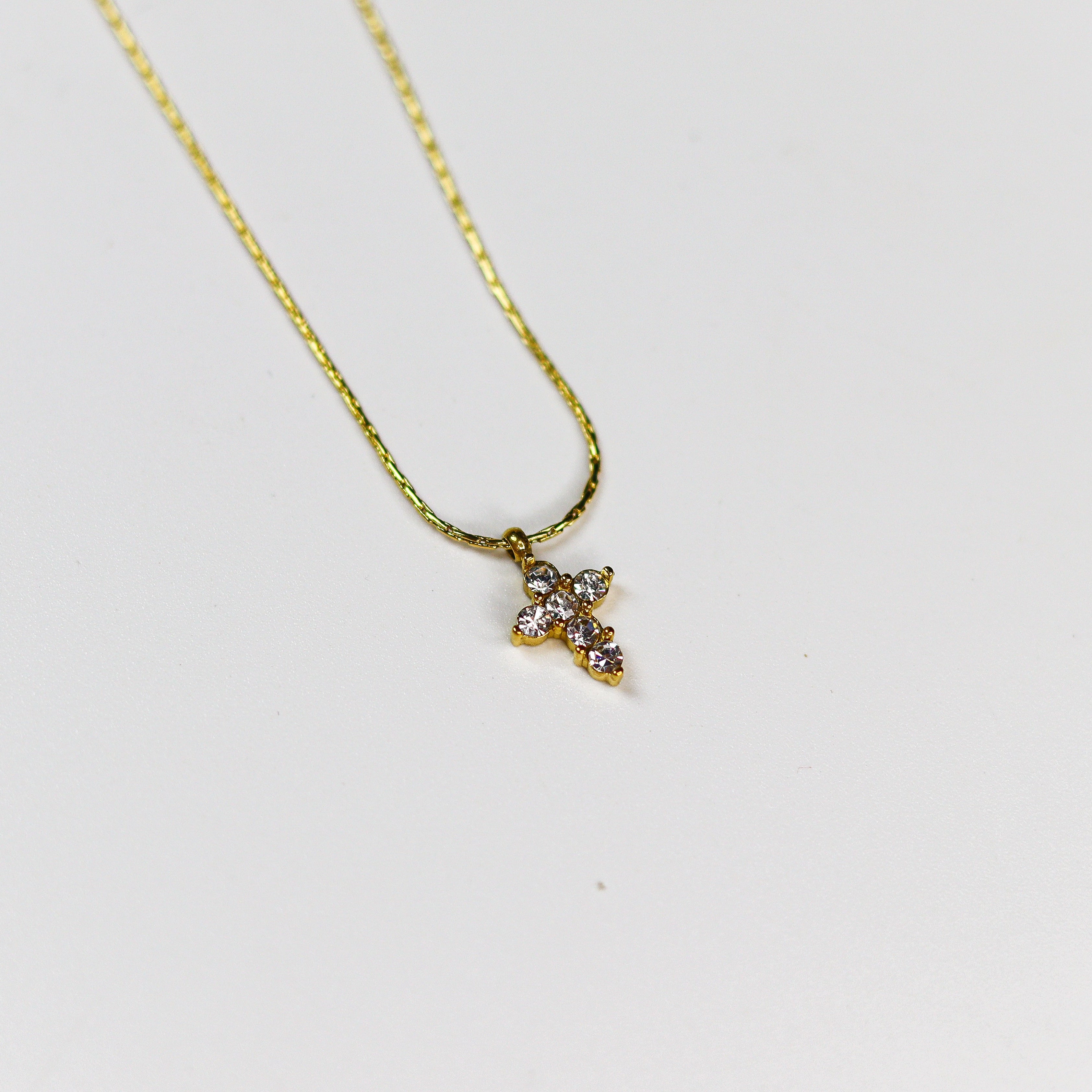 This delicate piece is crafted from premium stainless steel and coated in a lavish 18k gold plating, ensuring both quality and wearability. The iconic cross pendant, adorned with luminous stones, hangs gracefully on a sleek chain that catches the light. Designed for an active lifestyle, this necklace is waterproof, tarnish-resistant, and hypoallergenic, guaranteeing enduring shine and comfort.