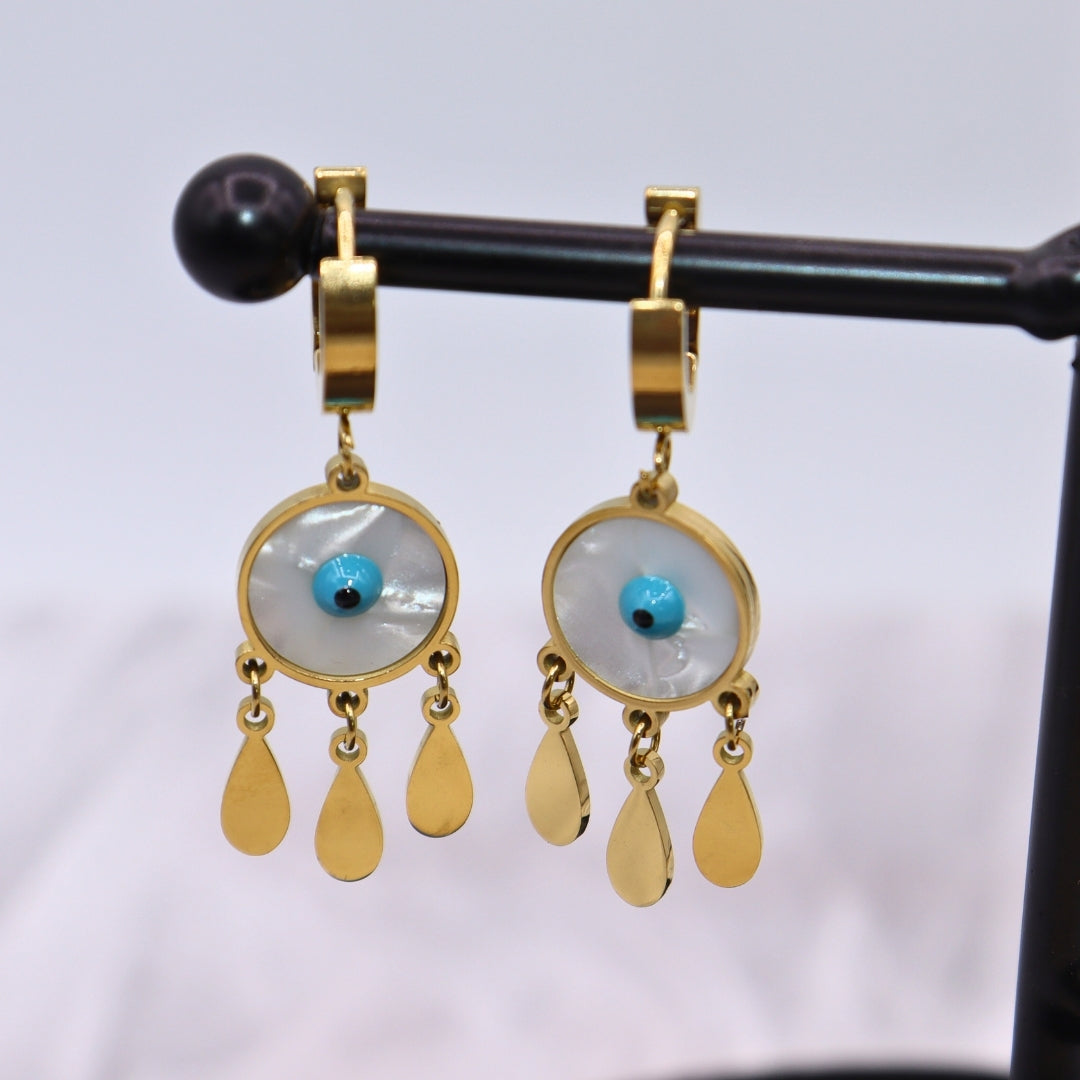 Evil Eye Drop Bali Hoops - Adorn-iq
