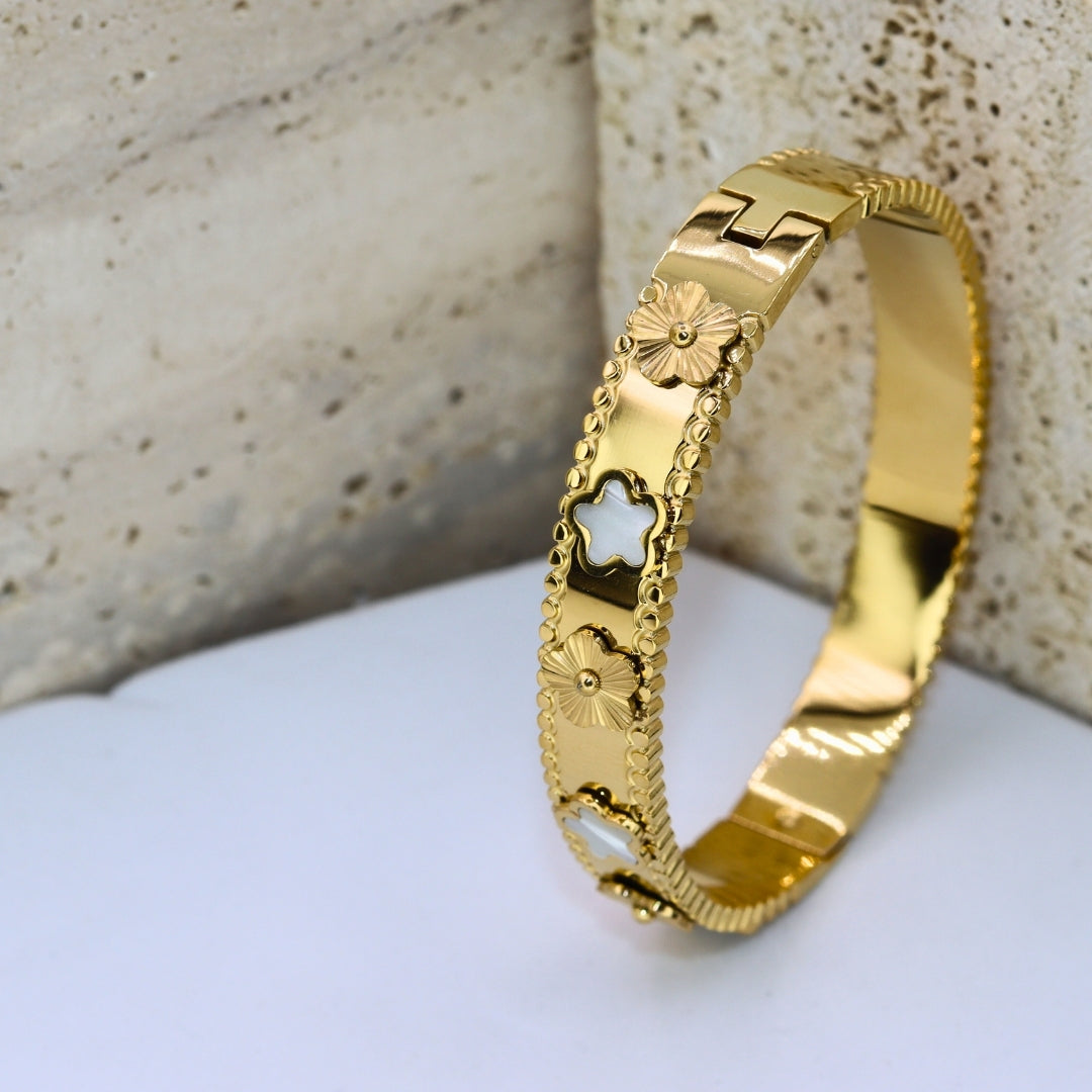 Flower Gold Bangle Bracelet